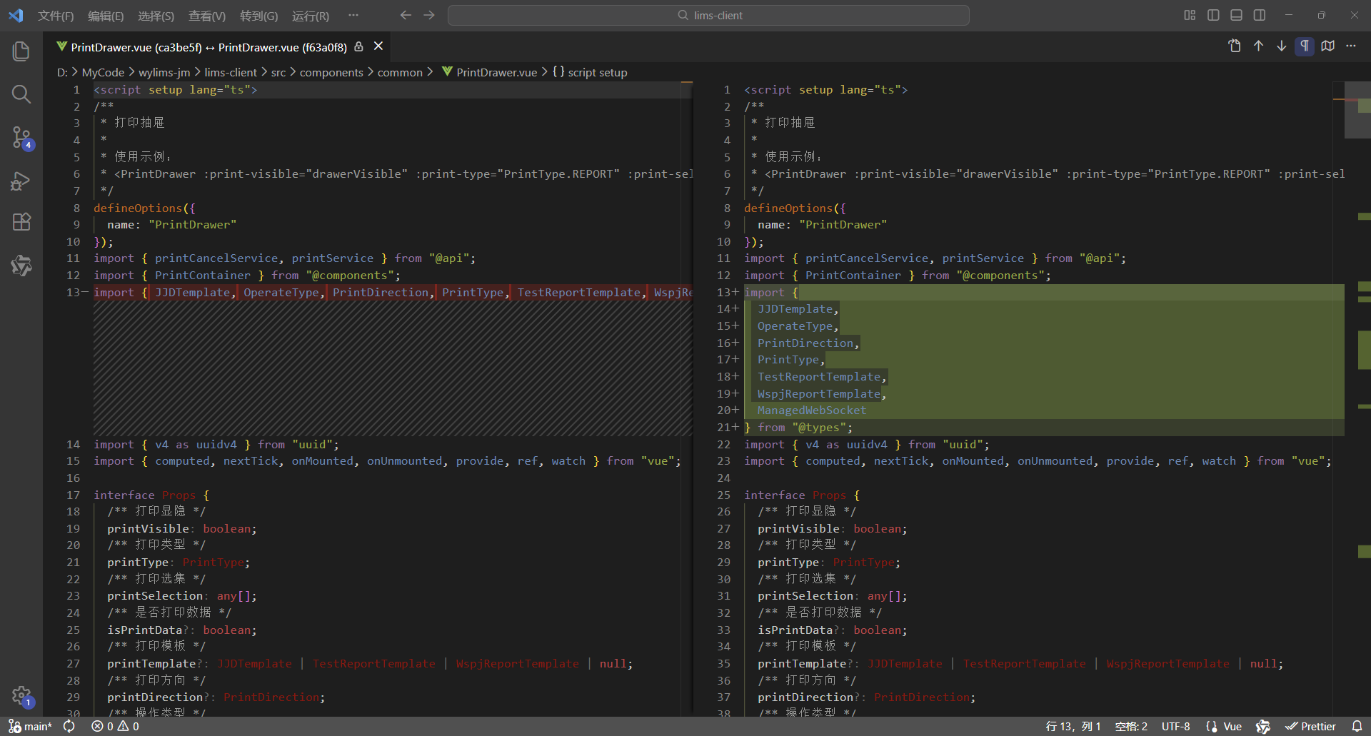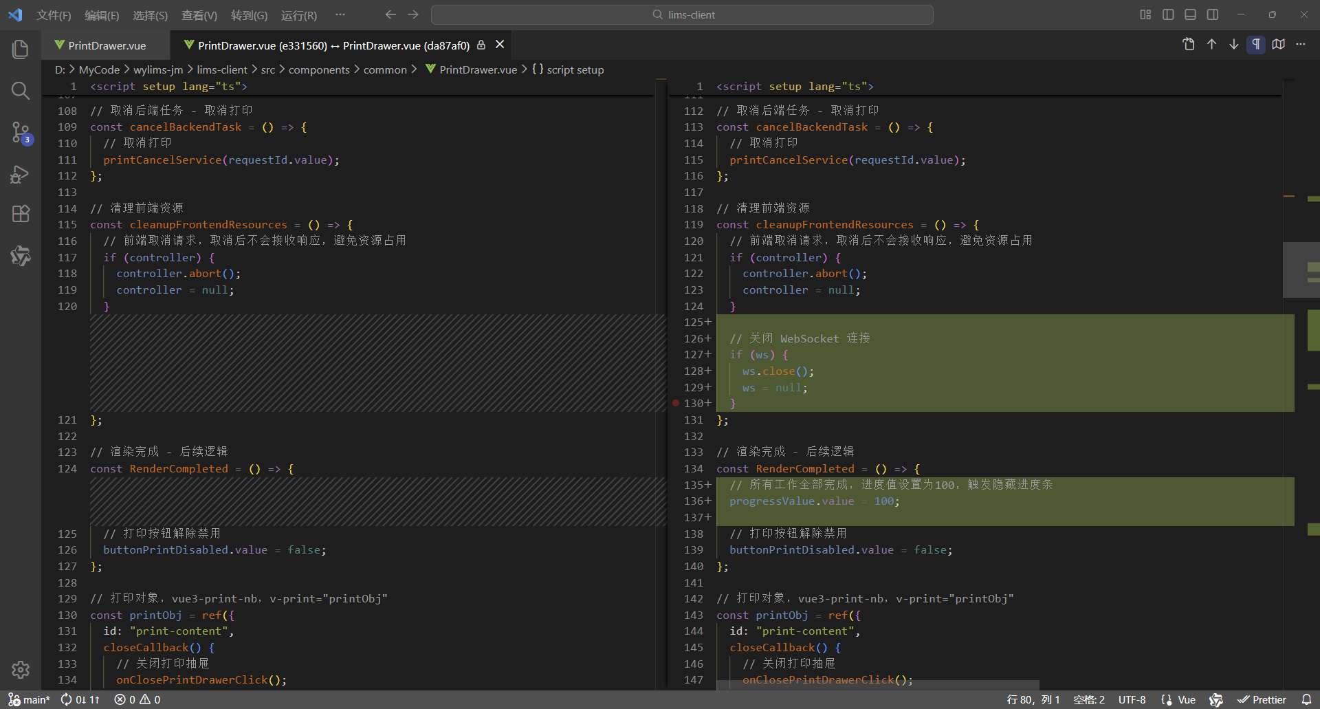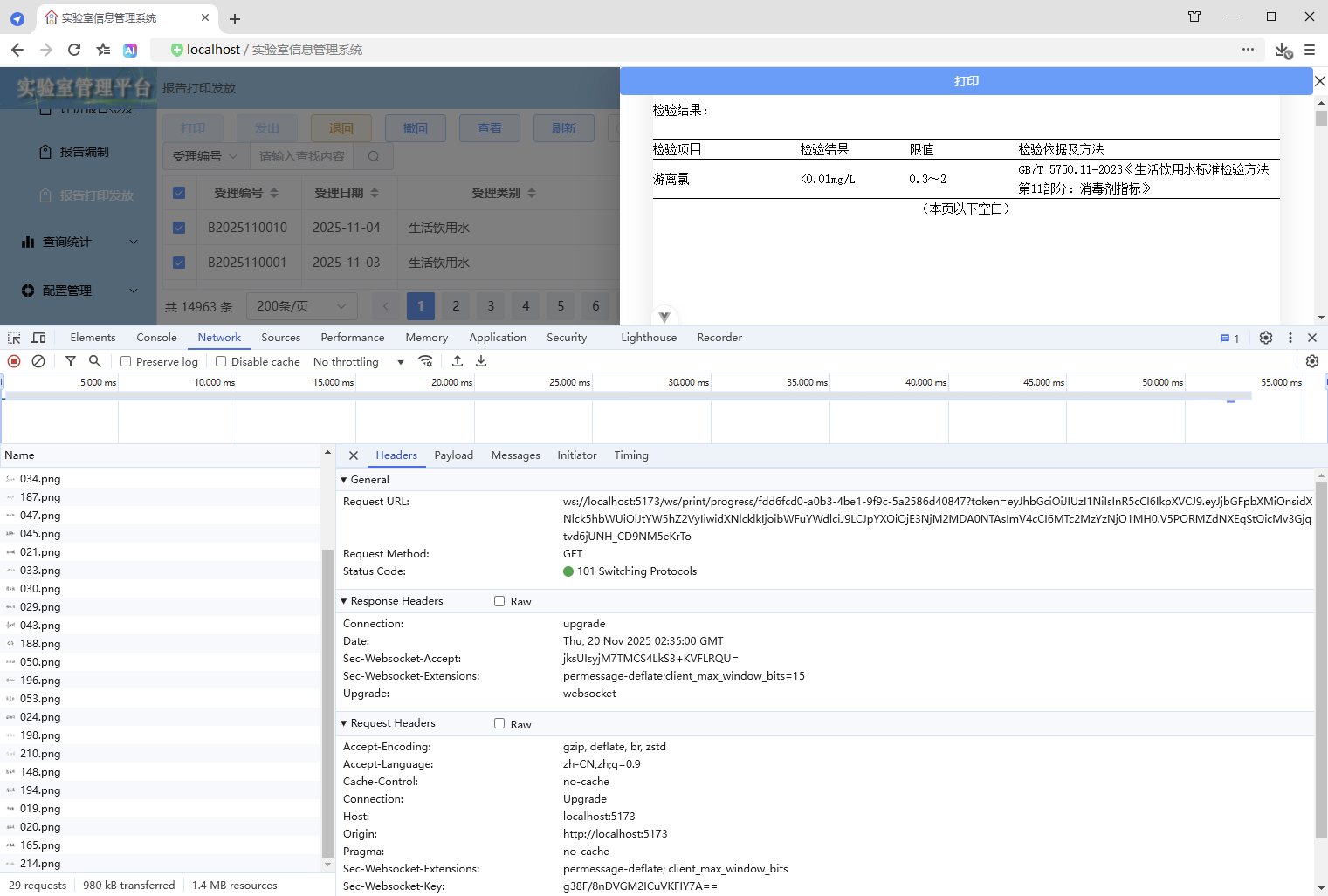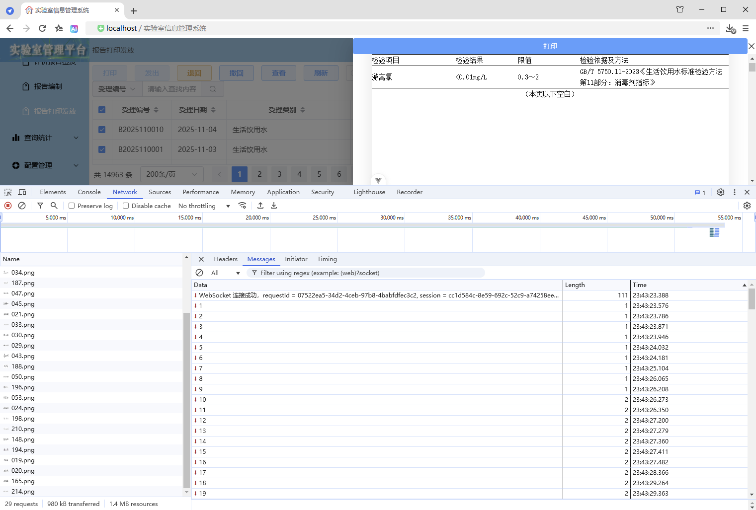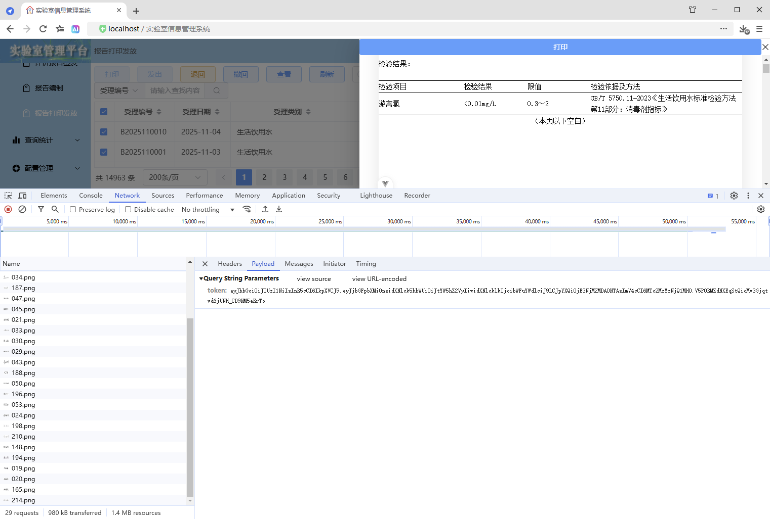 初始情况,打印没有进度条显示:点击【打印/查看】,弹出打印对话框,开始加载数据(200份报告),数据已加载,耗时41.42秒,这个过程页面一直没有变化,需增加进度显示,增强使用体验。原来的代码:打印抽屉。