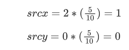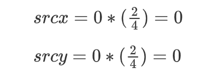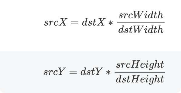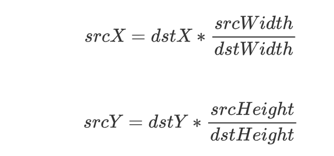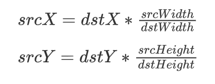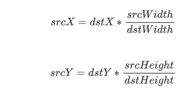 首先还是目标像素点与原图像的像素点的对应公式如下所示: