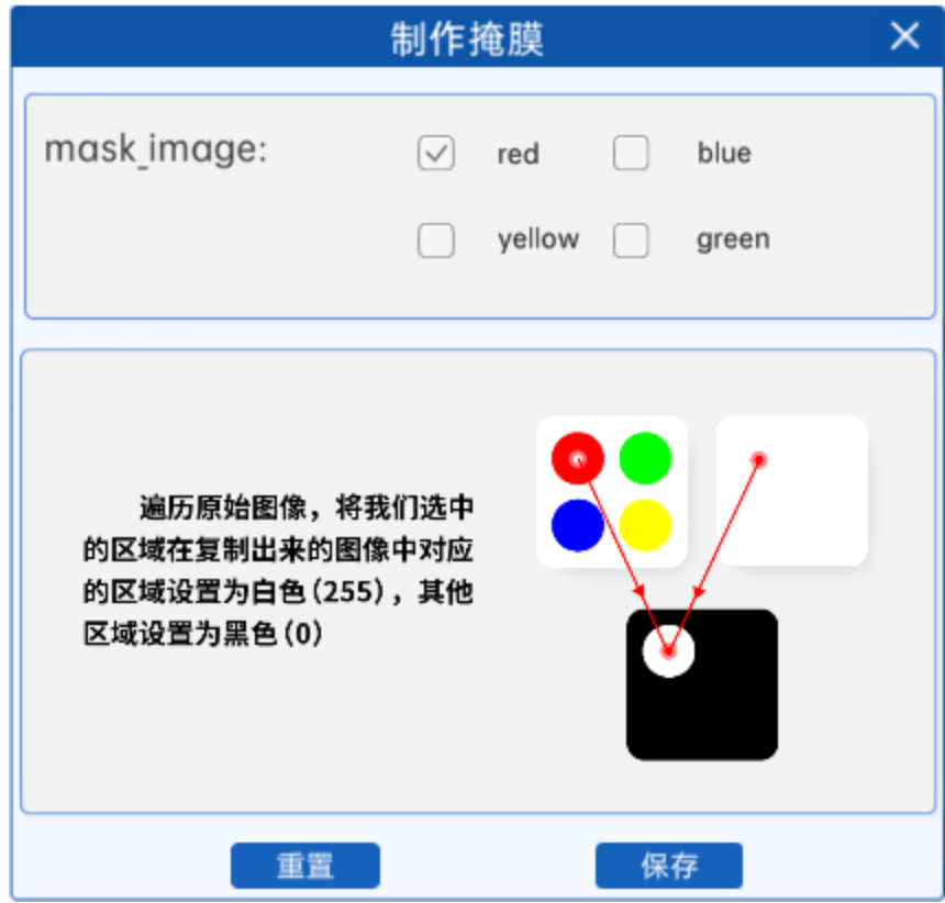 掩膜(Mask)是一种在图像处理中常见的操作,它用于选择性地遮挡图像的某些部分,以实现特定任务的目标。掩膜通常是一个二值化图像,并且与原图像的大小相同,其中目标区域被设置为1(或白色),而其他区域被设置为0(或黑色),并且目标区域则可以根据HSV的颜色范围进行修改,如下图所示,可以选择制作不同颜色的掩膜: