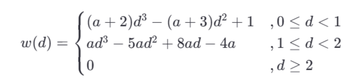 BiCubic基函数也就是双三次插值的权重函数,它决定了如何根据距离对周围像素进行加权平均。