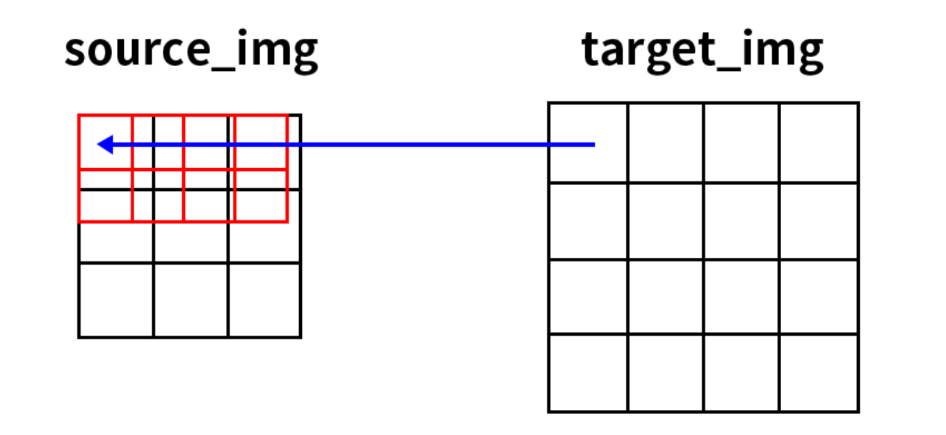 其中[x]、[y]表示对坐标值向下取整,通过该方法就可以计算出新的图像中所有的像素点的像素值。