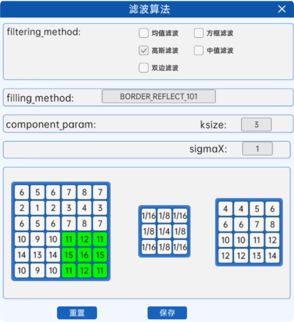本实验中共提供了五种滤波的方式,下面进行一一介绍。