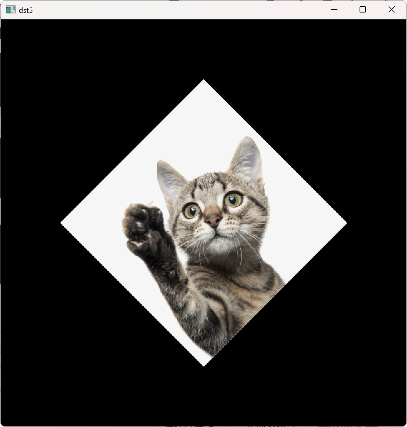dst = cv.warpAffine(cat, m, (w, h),cv.INTER_NEAREST)