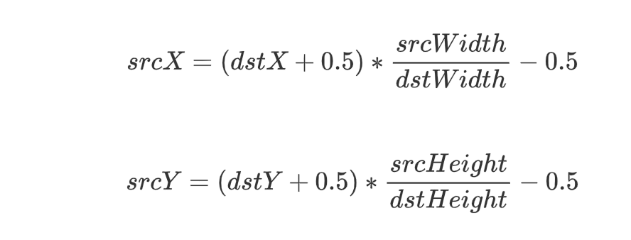 首先要了解线性插值,而双线性插值本质上就是在两个方向上做线性插值。还是给出目标点与原图像中点的计算公式