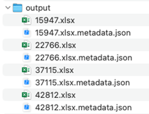 为了实现基于元数据的Q&A问题导入,对前面整理的Excel文件进行拆解,每个Q&A问题对都对应一个Excel文件和一个元数据metadata.json文件,如下所示。