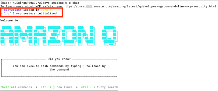 启动Amazon Q Chat可以看到配置的Playwright MCP Server已经正常启动。