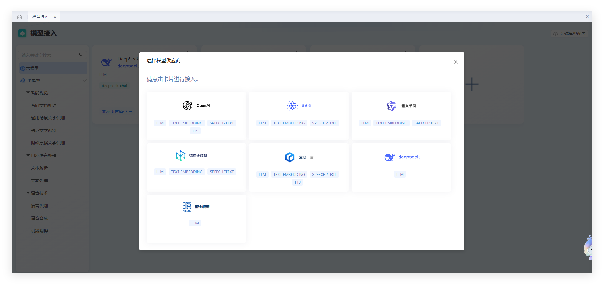 - 模型管理,开放兼容:通过平台的模型接入功能,企业可以灵活接入海岳大模型、Deepseek、OpenAI、智谱AI、文心一言等国内外顶尖的大语言模型。这保证了智能体能够基于最新、最强大的AI技术,具备优异的语义理解和推理能力。