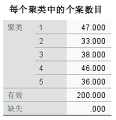 图7-11给出了每一个观测所属的类和每个聚类中的案例数。通过聚类分析我们可以看出,所有的观测按照与聚心的距离被分成了5类。