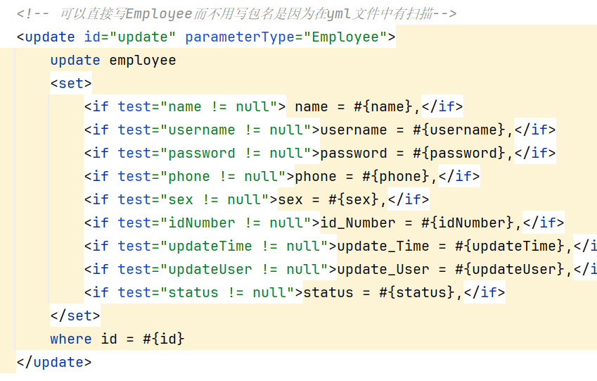 这个就相当于new employee()一个对象,然后用set方法给id,status填充好,只不过更方便一点