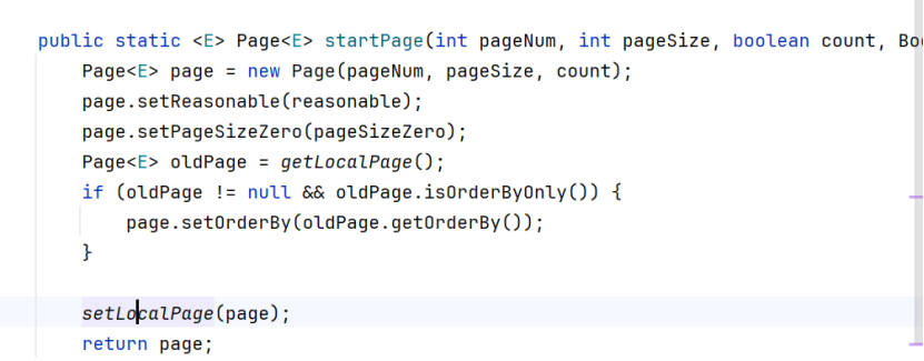 打开startPage源码,可以看到startPage函数里有一个setLocalPage函数