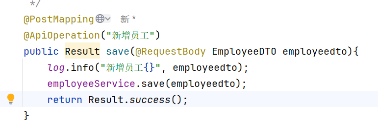 然后要注意的是我们给前端的数据是封装到employeeDto里的,所以传入的参数是dto而不是employee