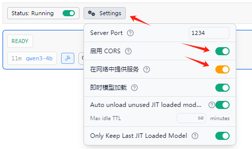 局域网访问:勾选“在局域网内提供服务”选项后,服务器会监听所有网络接口(0.0.0.0),允许其他设备通过 IP 地址访问