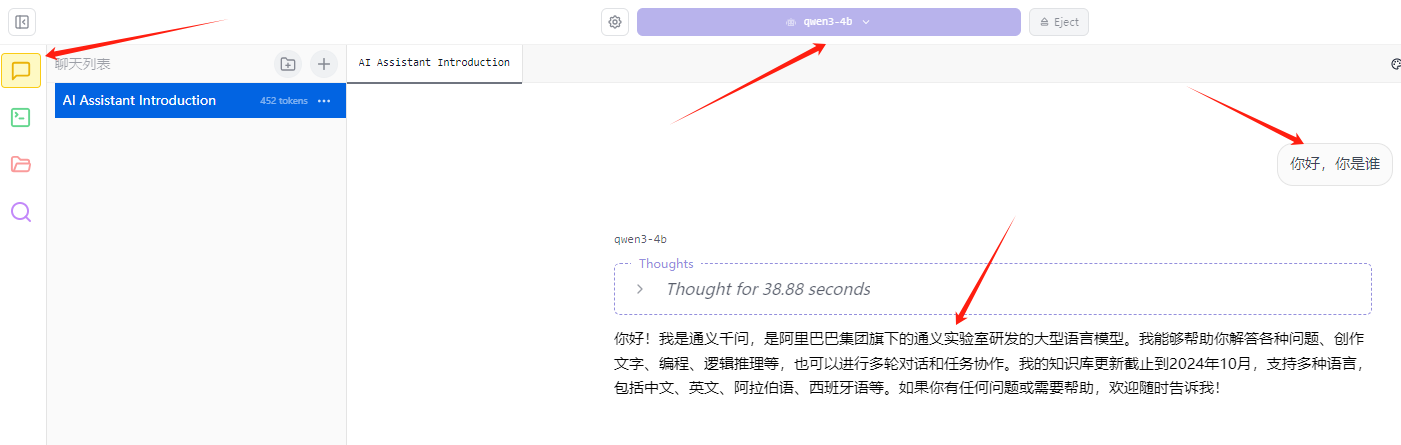 默认没有模型,所以需要安装一个,这里以最火的Qwen3为例子。