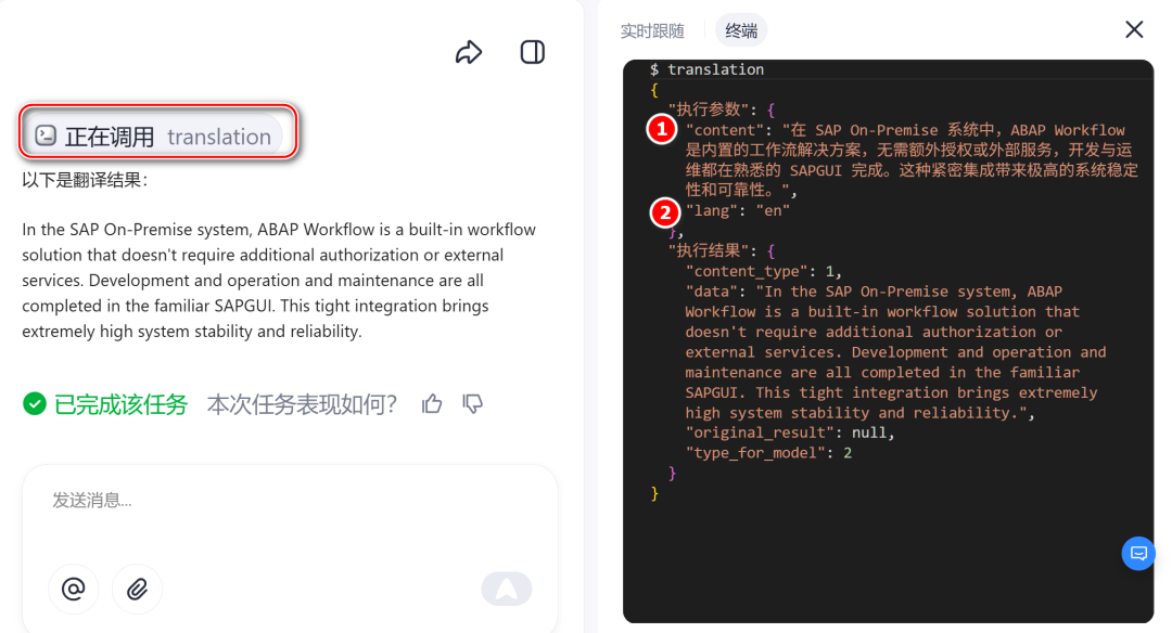 从任务运行日志可以看出,名叫 translation 的工作流确实被触发执行了。