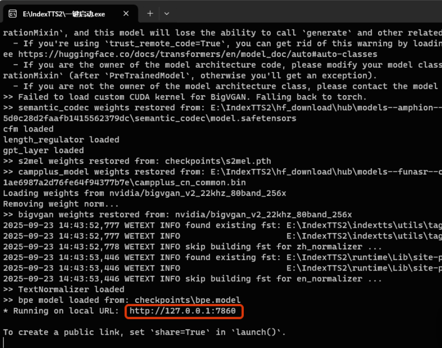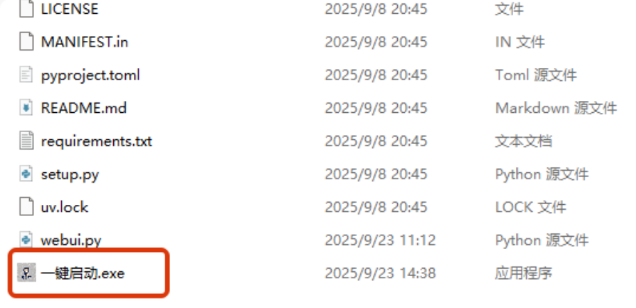 双击“一键启动.exe”等待启动完成,打开浏览器访问http://127.0.0.1:7860 进入控制台,推荐使用edge或谷歌浏览器。