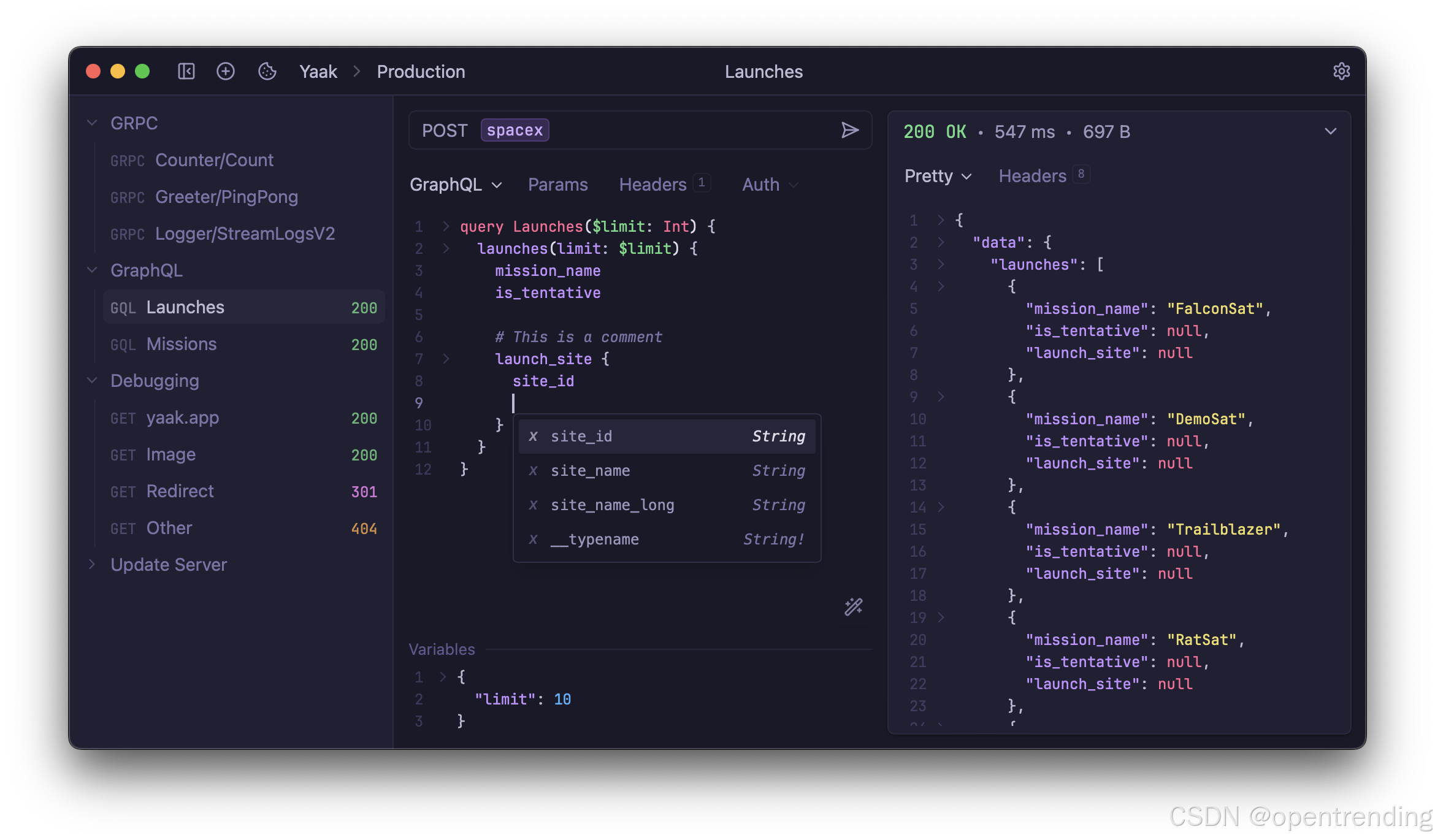 Yaak 是一款直观易用的桌面 API 测试工具,能轻松处理 REST、GraphQL、WebSocket 等多种接口协议。它支持从 Postman、Insomnia 等工具导入数据,还能自动添加 OAuth、JWT 等鉴权信息,省去重复配置的麻烦。开发者可以用 JSON 路径过滤响应数据,或用环境变量一键切换开发与线上配置,方便多场景调试。通过链式请求和动态模板,能自动生成时间戳等参数,模拟复杂业务流程。它提供工作区管理功能,支持用文件夹归类接口,还能通过 Git 同步数据,适合团队协作。无论是调试实时推送的 SSE 接口,还是测试 gRPC 服务,都能在一个工具里完成。桌面端的特性让它尤其适合需要本地代理或离线使用的开发场景。