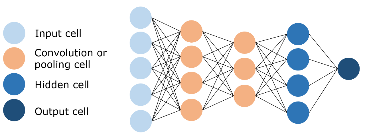 - 卷积神经网络(Convolutional Neural Network,CNN),利用训练参数远小于前馈神经网络的卷积层来进行特征提取和学习,其结构如下图所示: