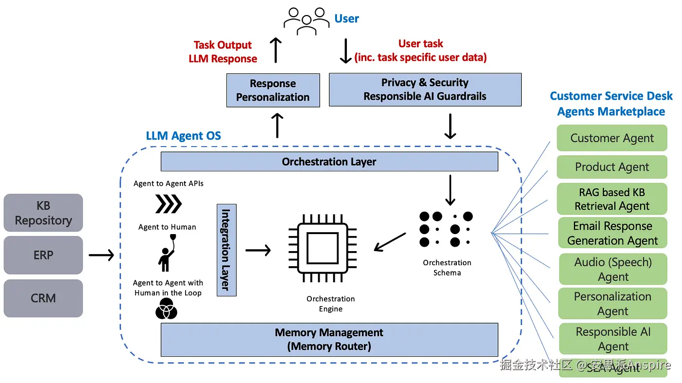 由于需要编排多个智能体,因此需要一个集成层来支持不同的智能体交互模式,例如智能体到智能体的API、提供供人类使用的输出的智能体API、人类触发AI智能体、人类在环的AI智能体到智能体交互等。这些集成模式需要得到底层智能体运维(AgentOps)平台的支持。