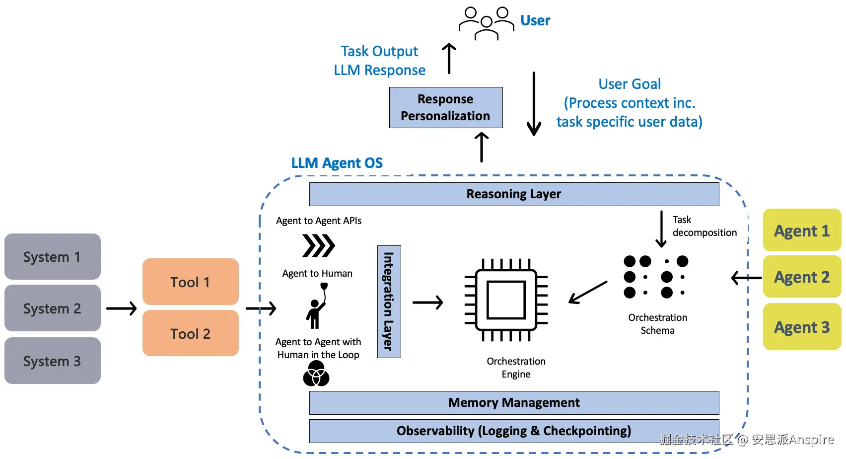 这就需要一个个性化层。类似于将大语言模型微调为特定领域的大语言模型/小语言模型,我们认为,为了推动智能体在企业中的应用,需要针对企业特定场景(适用的用户角色和用例)对(通用)AI智能体进行定制/微调。