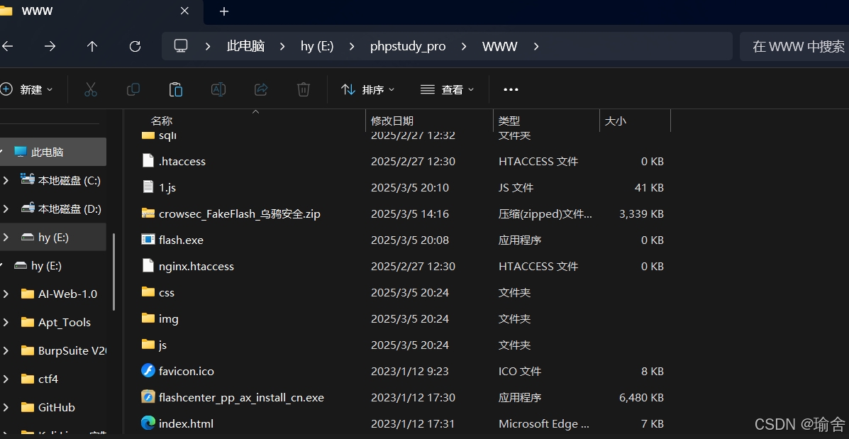 8,把shell.exe拖到我们的假网站目录上并改成flash安装包名字