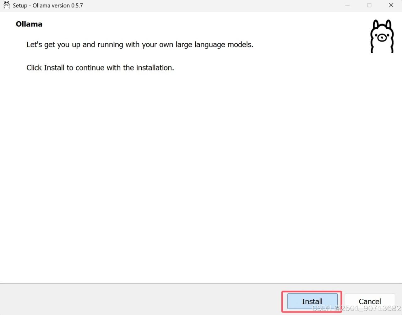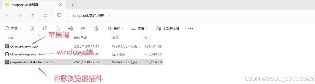 首先安装ollama,安装过程很简单,双击安装程序即可,工具包中包含了mac和windows两个安装包,大家按需选择即可。