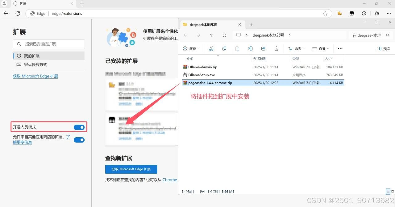 把开发人员模式打开,把工具包中的page assist插件拖进去,并添加扩展。