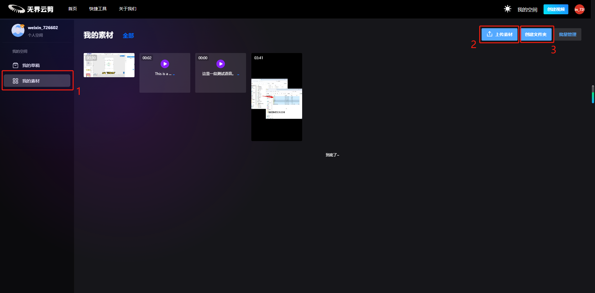 右上角的“创建文件夹”3,可以对素材进行分类,使用户更为精准的管理和筛选素材。