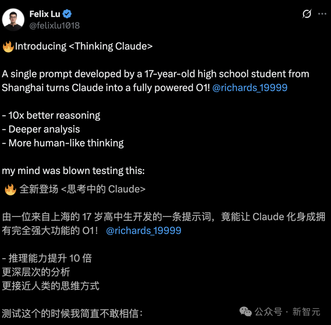 Claude本身已经很强了,而涂津豪想为它注入一种类似o1的人类化思考模式。