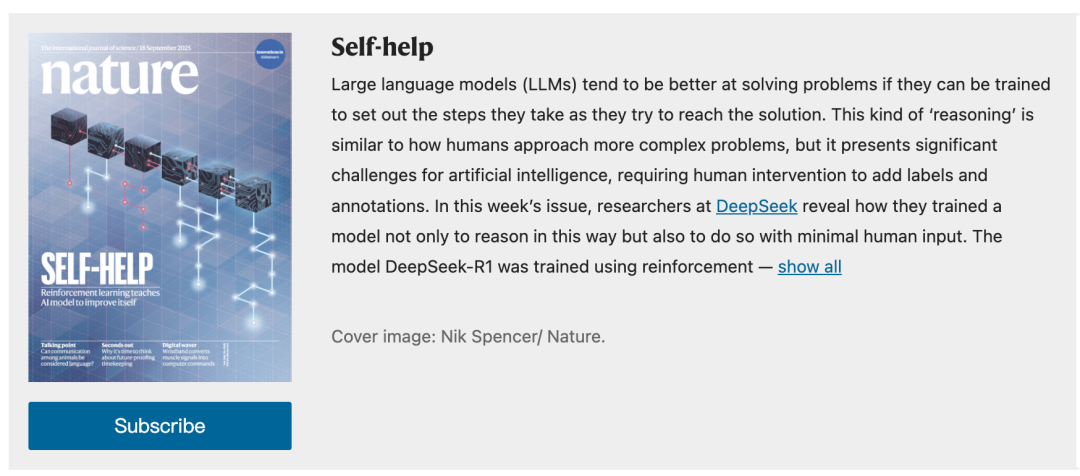 DeepSeek登上Nature封面,DeepSeek-R1成为史上第一个经过严格同行评议的大模型。