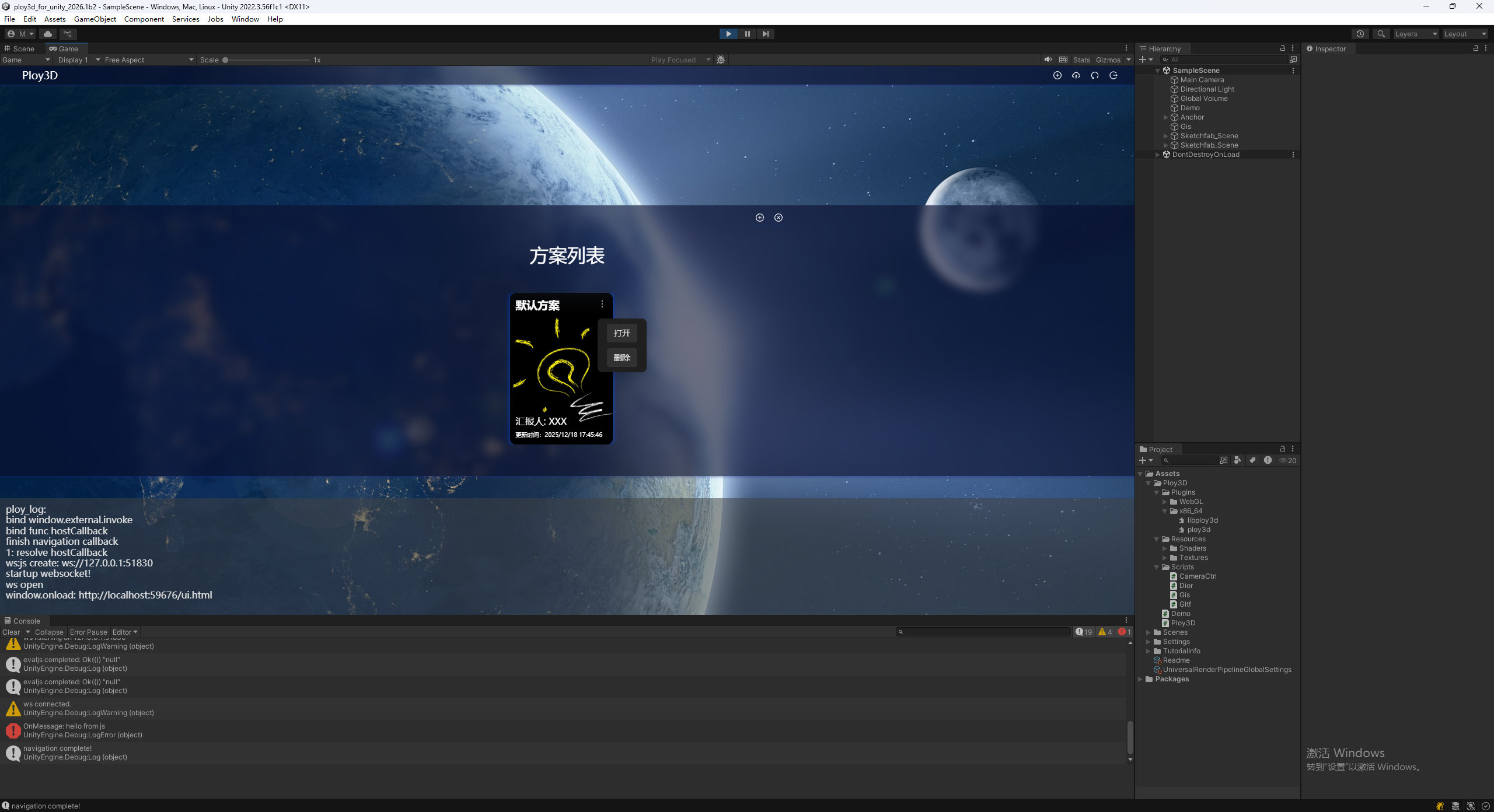 在传统的 Unity 开发中,UI 系统(如 UGUI/UI Toolkit)在处理复杂数据可视化、动态布局以及 Web 生态集成时往往面临开发周期长、迭代成本高的挑战。Ploy3D 插件为 Unity 开发者提供了一套高性能、跨平台的 Web 界面支持方案,让前端生态的灵活性与 Unity 3D 的引擎实力很好结合。
