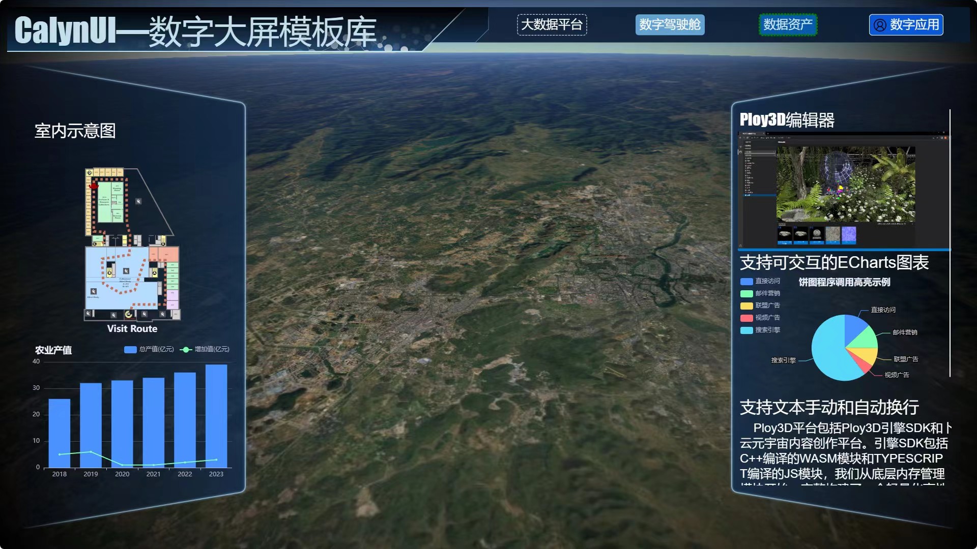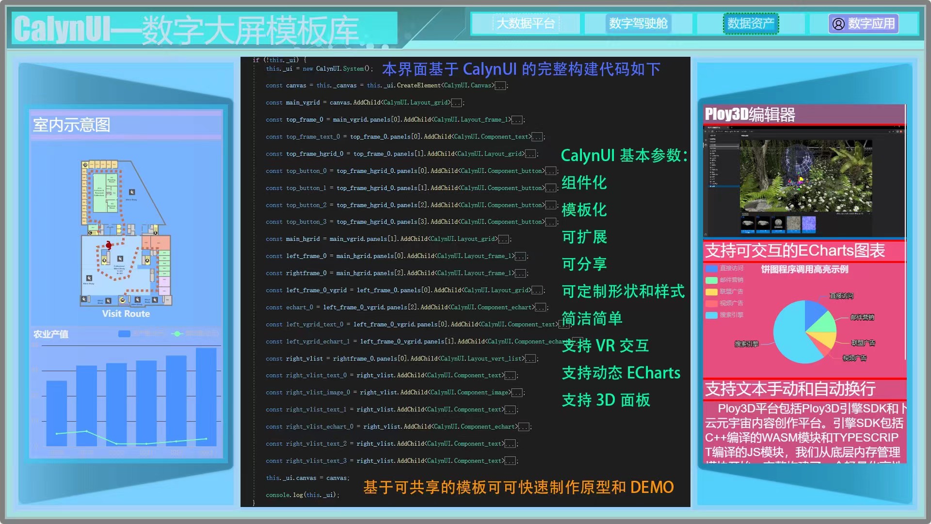 基于 PLOY3D 开发的 “数字孪生演示汇报平台” 即将登录 UNITY。其中一个的功能便是支持自定义汇报内容看板界面,而自定义界面在Unity中是很难实现的,而用 Web 技术我们可以很简单的实现这些。