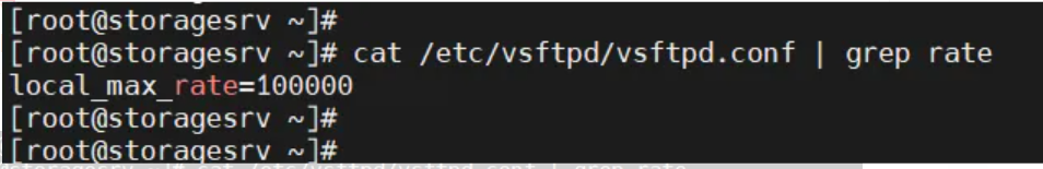 (4) 查看 vsftp 配置文件中限速限制的配置(在 storagesrv 上执行指令: cat /etc/vsftpd/vsftpd.conf | grep rate)
