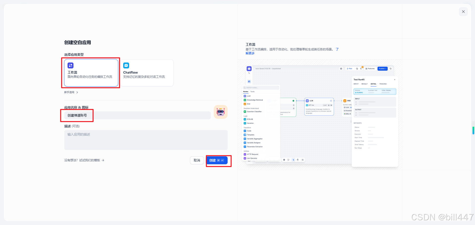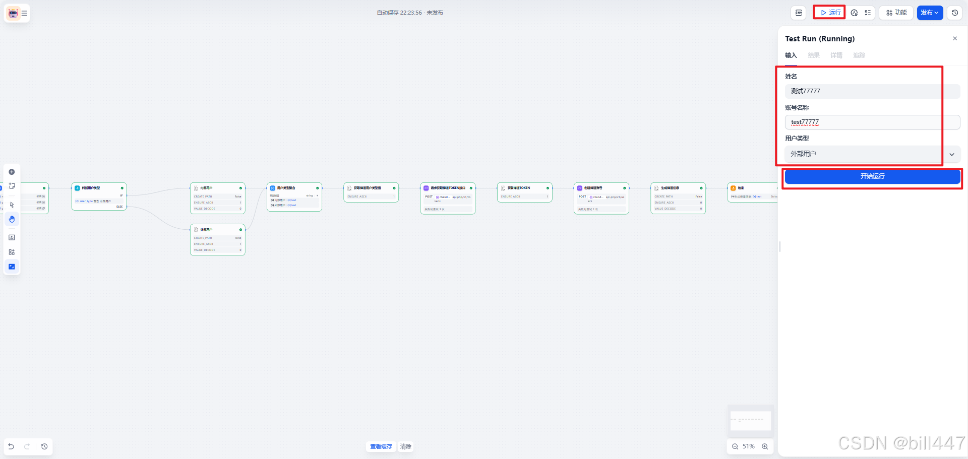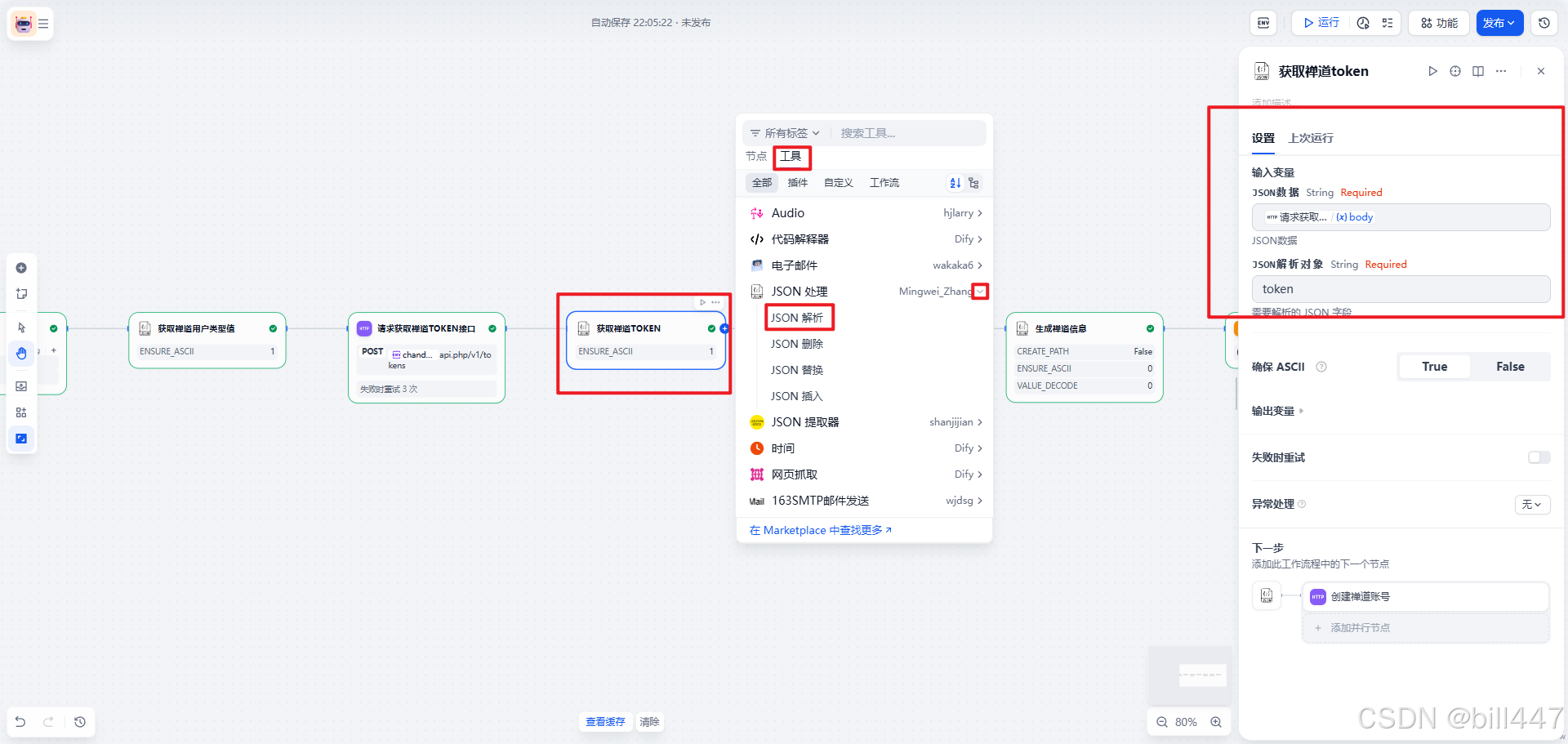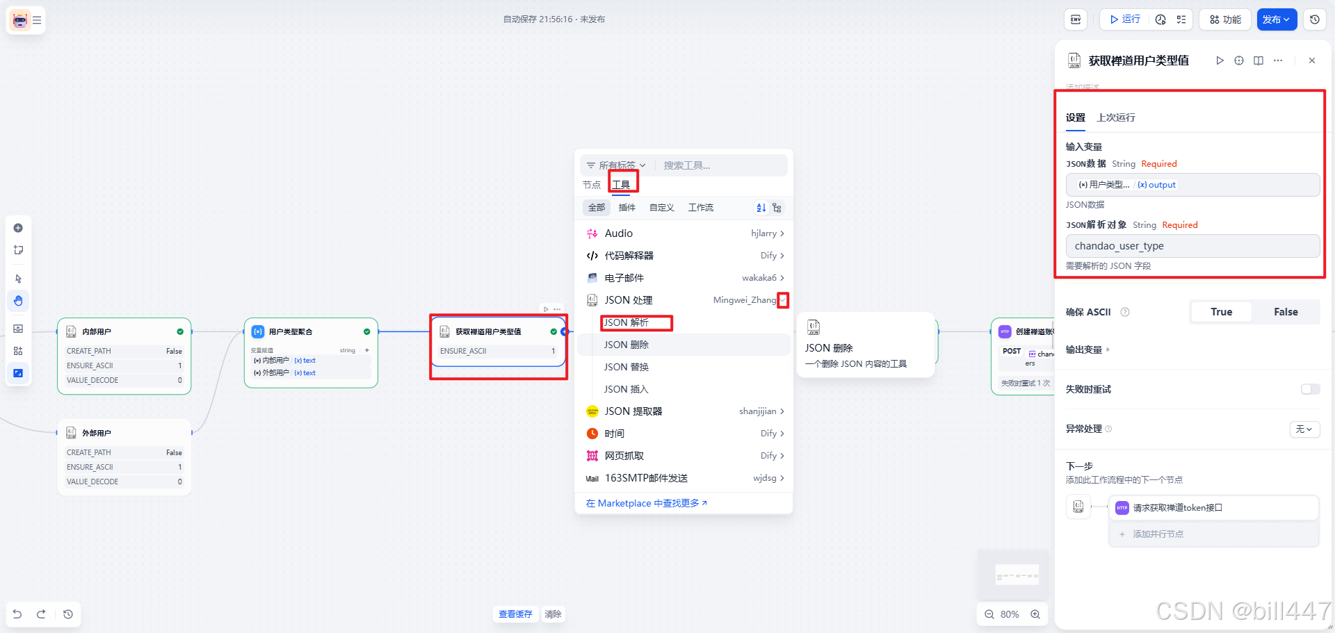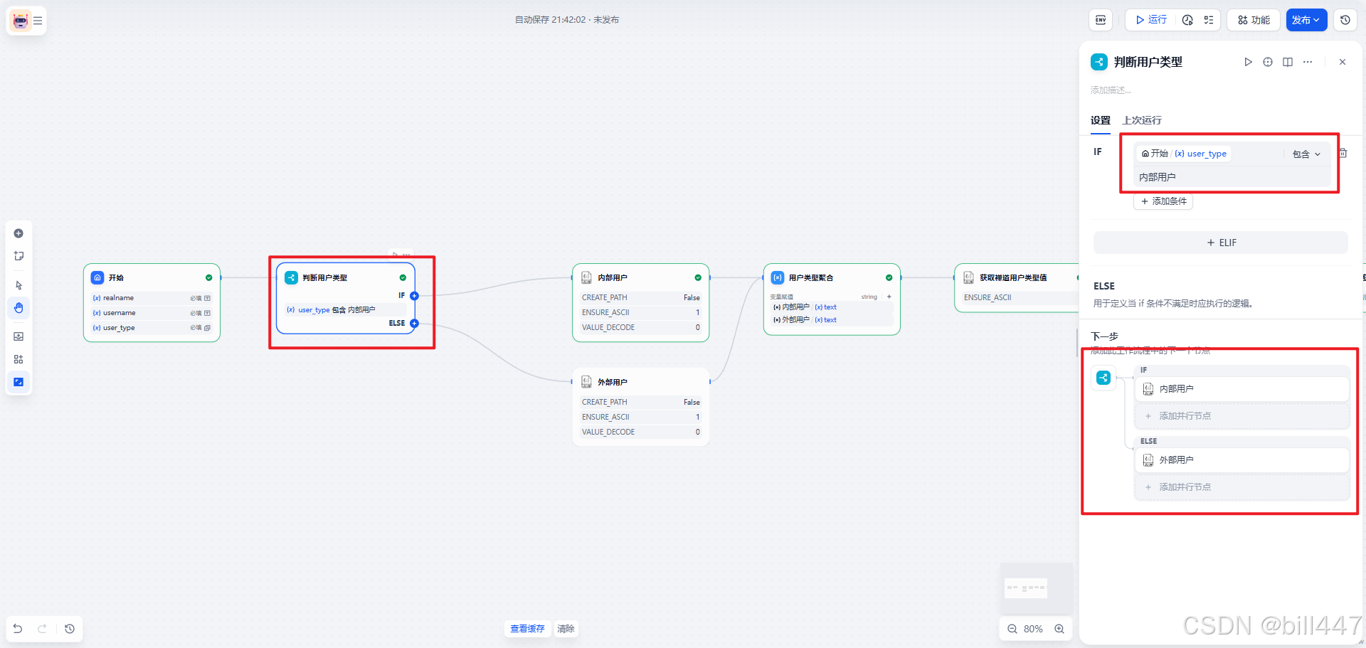 本文介绍了使用Dify 1.5.1创建工作流应用实现禅道账号自动创建的过程。主要内容包括:1)安装JSON处理插件;2)创建工作流应用并配置环境变量;3)设计包含13个节点的完整工作流,涵盖用户类型判断、JSON数据处理、HTTP请求等操作;4)通过条件分支处理内部/外部用户差异;5)最终实现账号创建功能并输出账号信息。文中详细说明了每个节点的配置要点,包括JSON插入格式、变量聚合等关键步骤,并