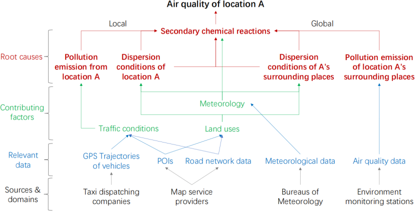 现实问题往往需要跨域融合,因为目标领域数据不足时,需要借助其他领域已有的数据(例如空气质量预测需要结合交通、气象、城市规划等领域数据)。但这些数据并非为同一目的采集,知识不自然对齐。