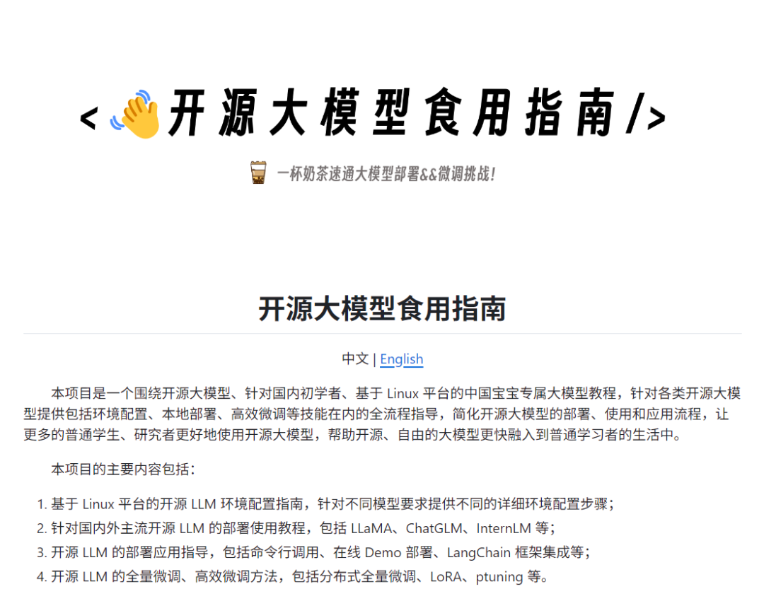 项目通过简短、实践导向的学习内容,帮助零基础的开发者快速入门,掌握大模型开发的核心技能,并实现从理论到实践的全流程学习。
