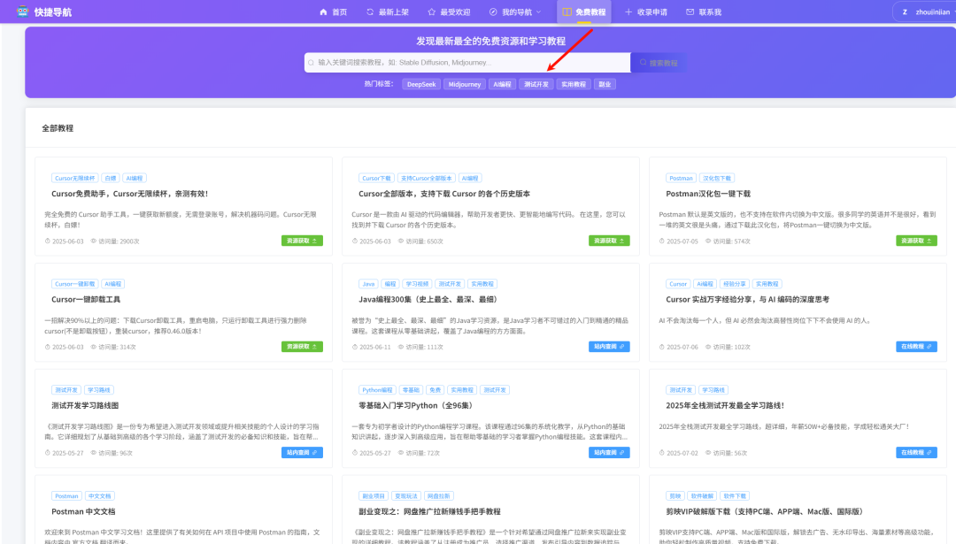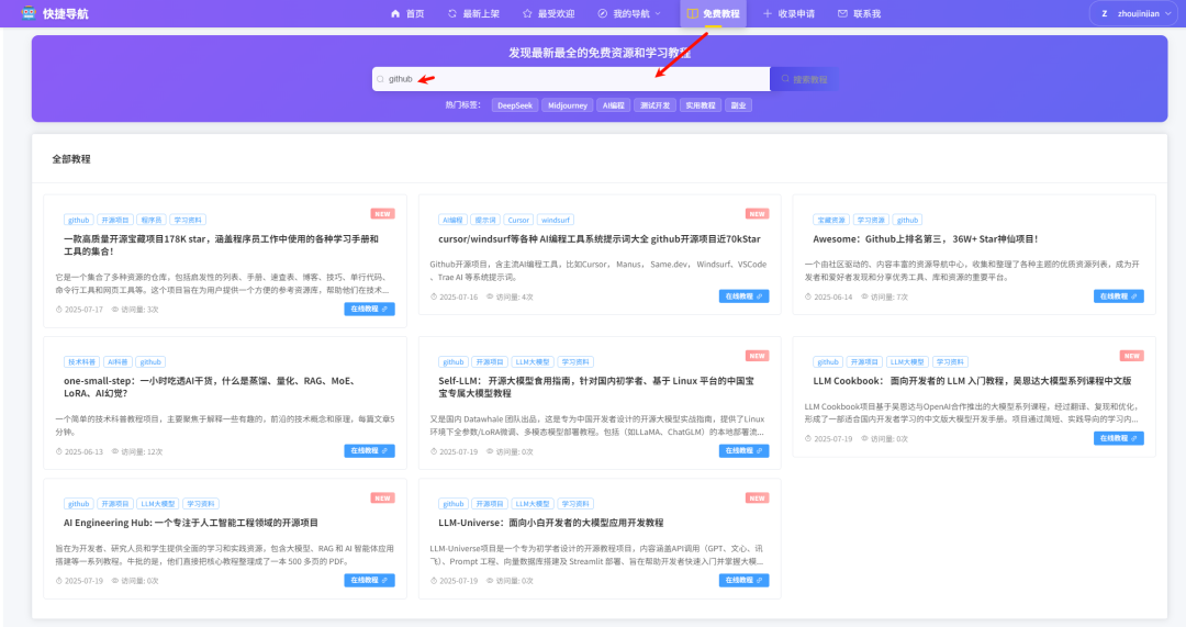 上述的这些开源学习教程地址,可以在PC端打开浏览器,访问快捷导航(https://kjdaohang.com/)上免费直达获取
