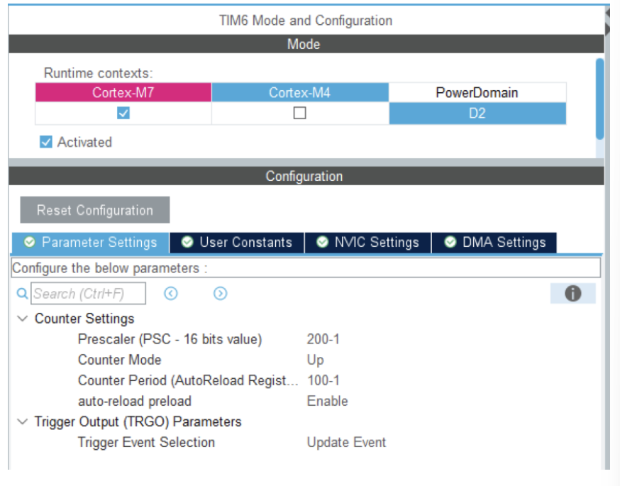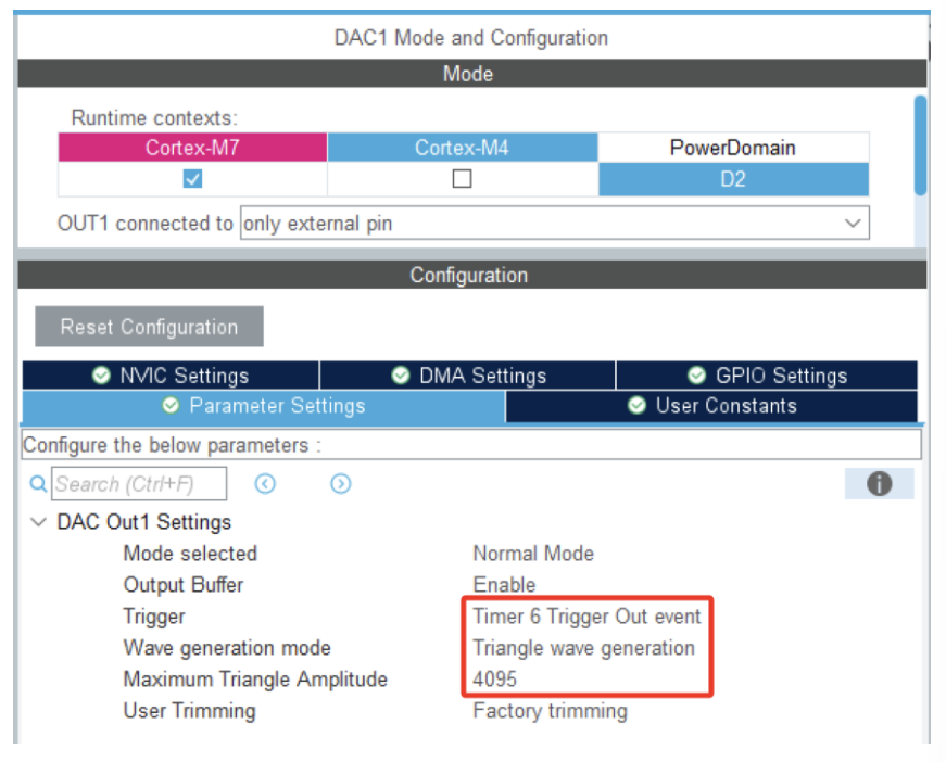 触发器(Trigger):选择TIM6也可以选择其他的定时器