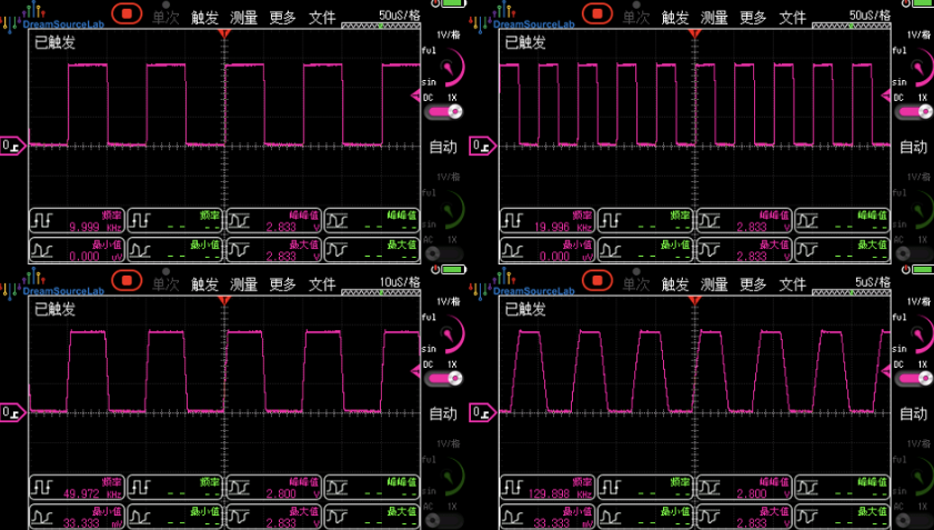 一、测试Demo程序输出波形效果1.1设定为方波