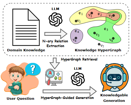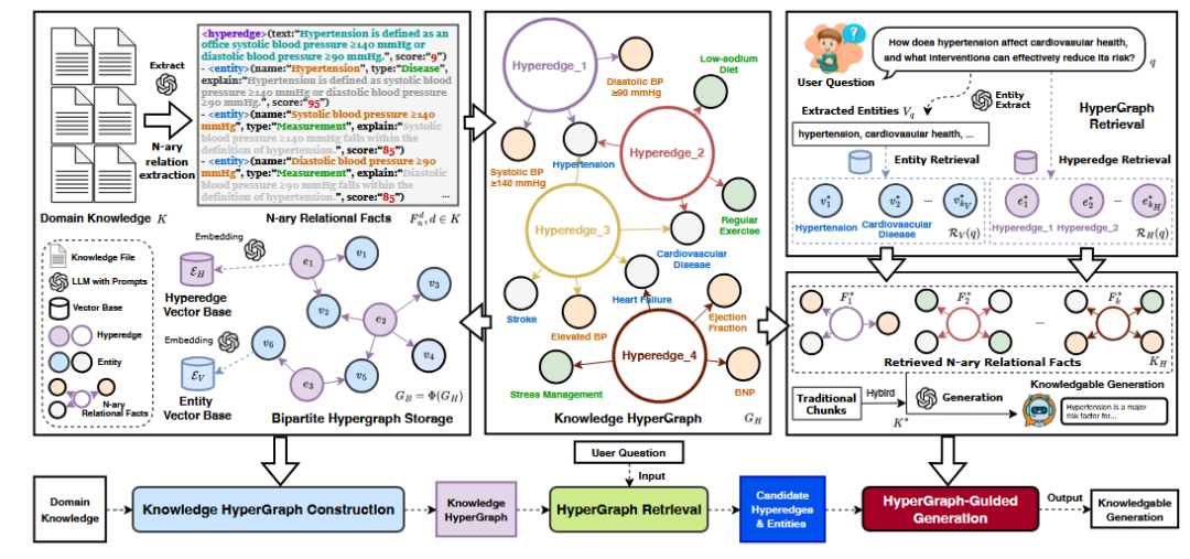 - 超图引导的生成机制是输出环节,利用检索到的知识生成高质量的答案。