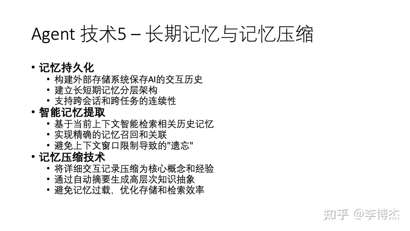 第二,记忆压缩技术是实现长期记忆的关键。人脑不会记住每一个细节,而是提取核心概念和关键经验。同样,AI 需要将详细交互记录压缩为核心见解。