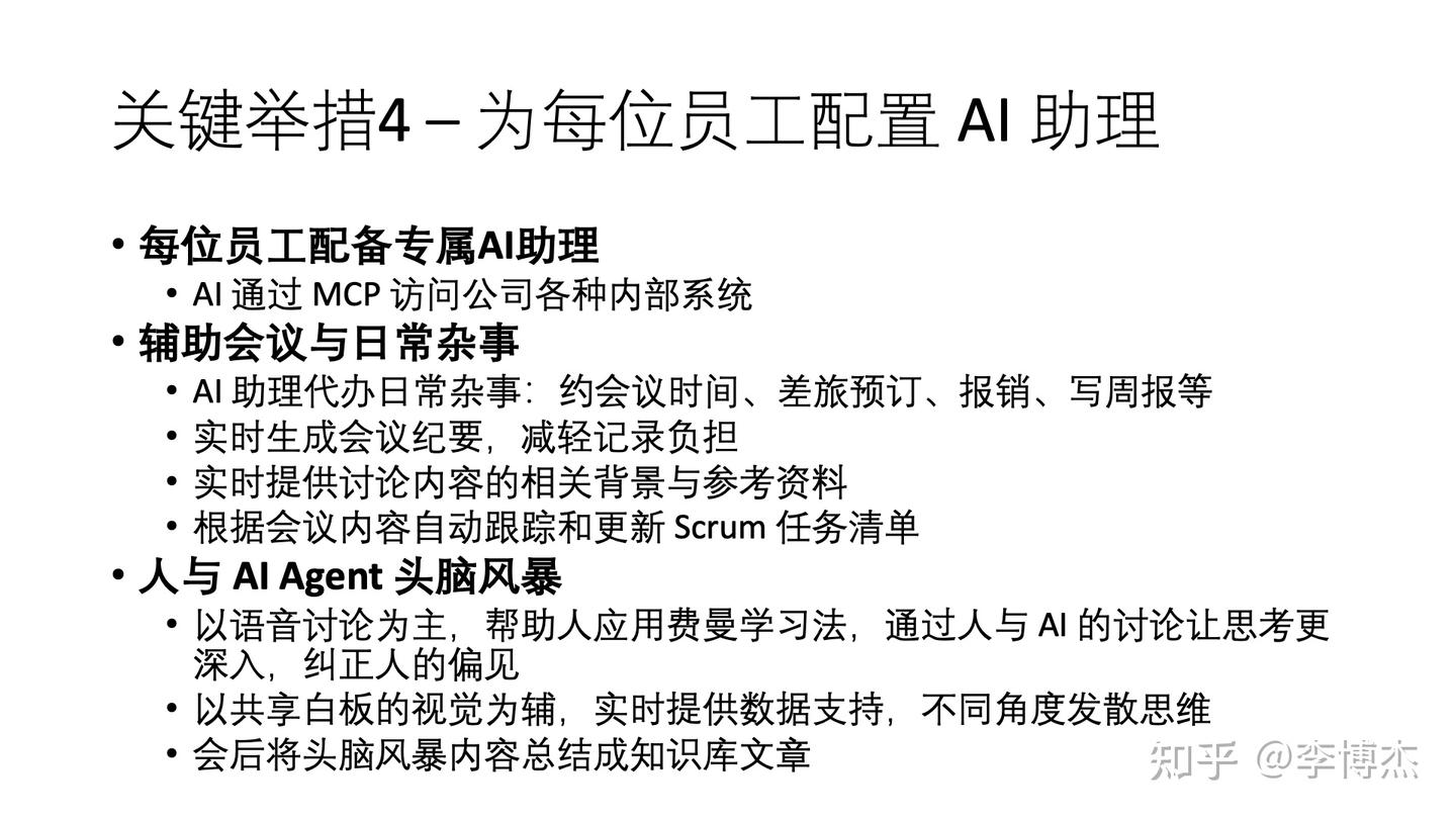 AI 作为助理,可以处理我们工作中的大量杂事。这样人类将专注于创造性、战略性和情感性工作,主要时间用于思考和讨论,而非处理繁琐细节。这不是贬低细节工作的重要性,而是认识到人类在创造性思维方面的独特优势。