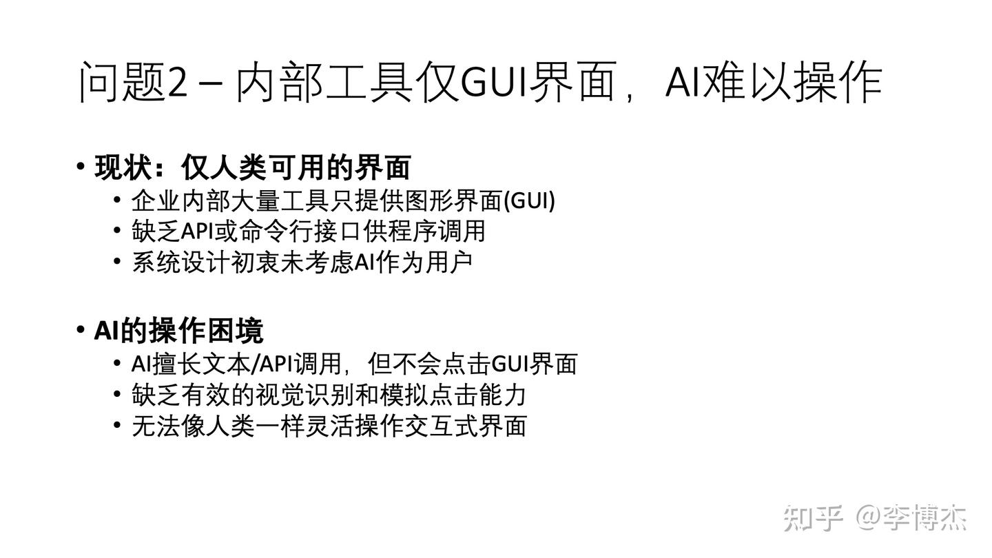 第 6 页:问题 2 – 内部工具仅 GUI 界面, AI 难以操作