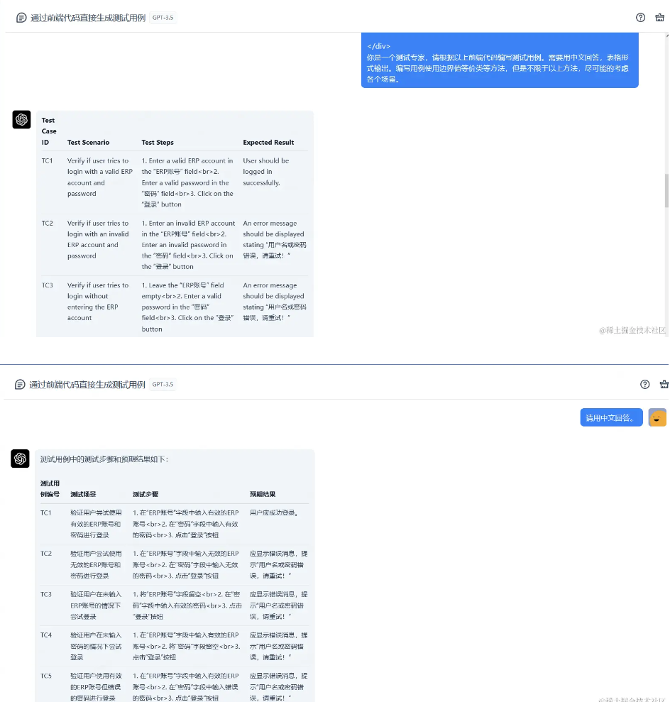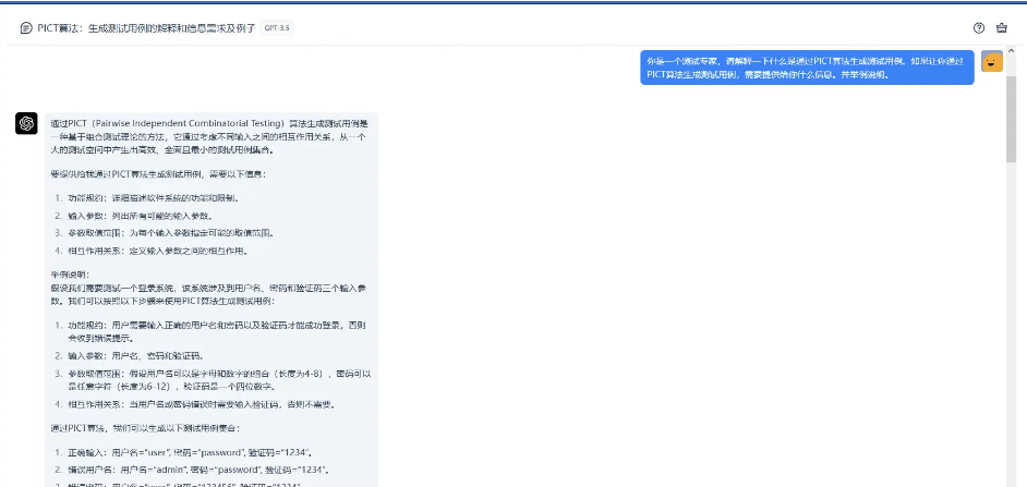 测试工程师在整个测试流程中,需求分析及编写测试用例在整个流程中占很大一部分比例。如果能通过chatGPT进行需求分析后,输出质量比较好的测试用例,将大大提升测试工程师的工作效率。然而经过测试有时候将需求输入给chatGPT后并不能生成令人满意的结果。但是对于系统或表单级别的需求,chatGPT给出的结果基本可以让人满意。甚至可以通过给定前端功能代码直接生成测试测试用例。