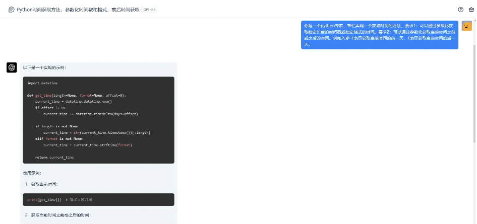代码辅助功能属于基本功能,对于一些方法或函数完全可以通过给定chatGPT指令或需求让其自动生成代码,虽然生成的代码可能有一些错误或不符合预期,但是的确可以给我们一些思路或基本代码。可以在自动生成的代码基础上进行更改或优化,可以大大提高我们写代码的效率。