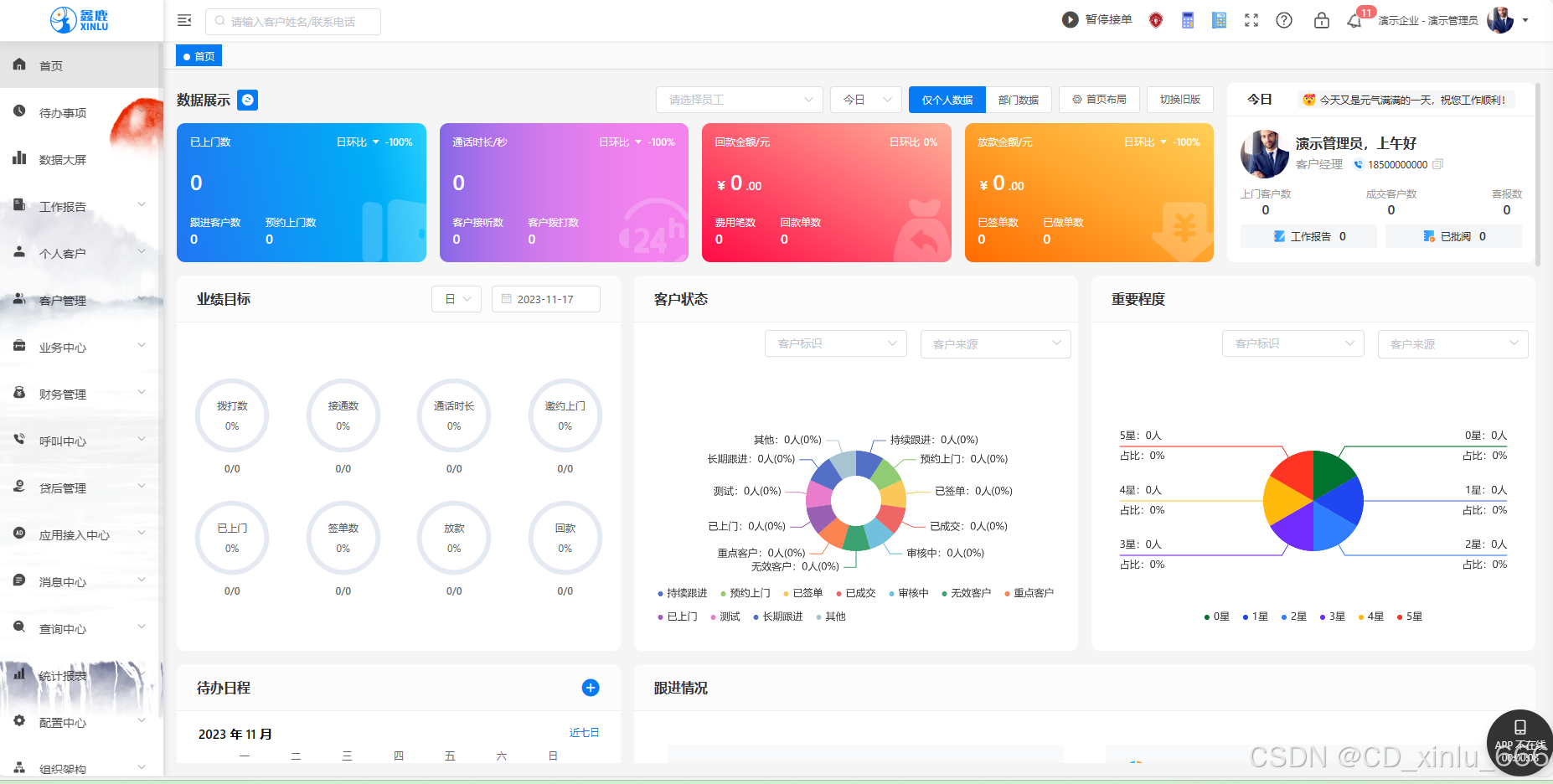 实时业绩看板:展示关键业绩指标(KPIs)如销售额、成交率、客户转化率等,支持按日/周/月/季不同时间维度查看