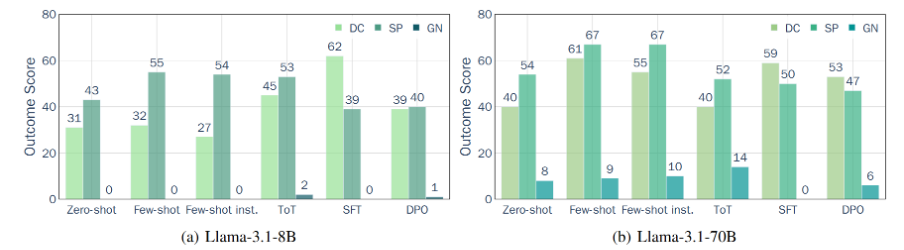 ▲ 图5. Llama-3.1-8B 和 Llama-3.1-70B 使用不同方法在 AR-Bench 上的性能对比。