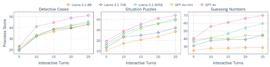3. 较强的模型能够利用多轮交互机会,持续获得有用的信息;