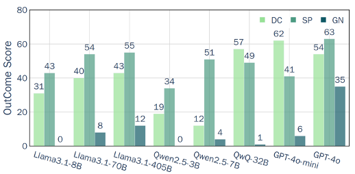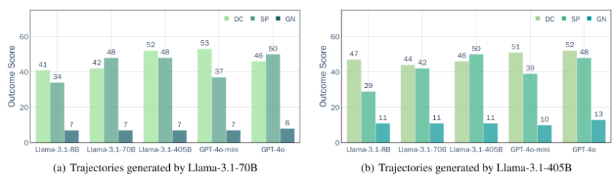 ▲ 图9. 使用 Llama-3.1-70B 和 Llama-3.1-405B 在交互过程中获得的交互记录 测试不同模型在给定信息的情况下给出正确结论的能力。