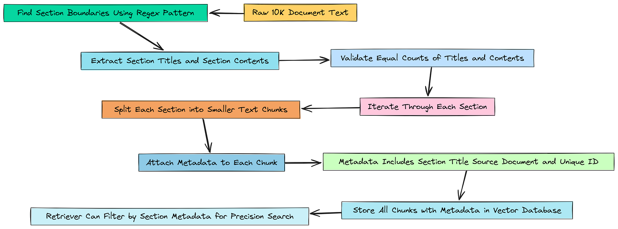 - 元数据感知分块: 我们的内部文档被重新处理,包含丰富的元数据,使检索器能够进行高度精确的过滤搜索。