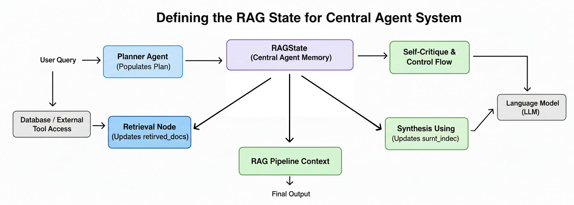 RAGState(包括original_question、plan、past_steps、current_step_index等)代表了代理在任何给定时间点的完整状态。 - 动作 (Actions): 代理可以执行的动作包括